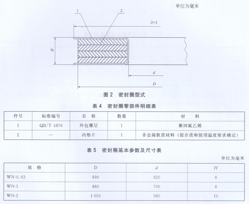 4.3.2 密封圈用聚四氟乙烯應(yīng)符合QB/T 4876的規(guī)定,厚度均勻,允許偏差為±0.1mm ,密封平面不允許有皺紋、凸起及徑向溝槽。