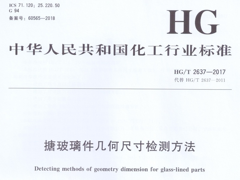 2021-02-28HG/T 2637-2017 搪玻璃件幾何尺寸檢測方法: 3.1 搪玻璃設備高頸法蘭最大最小直徑差及直徑偏差。3.1.1 量具 鋼卷尺:符合QB/T 2443的要求,分度值1.0mm,示值誤差為Ⅱ級。3.1.2 檢測方法 用鋼卷尺測量法蘭外徑,通過對稱分割法量出法蘭外徑最大值和最小值,測量偏差不大于1mm。3.1.3 計算 法蘭外徑最大值與最小值之差即為法...