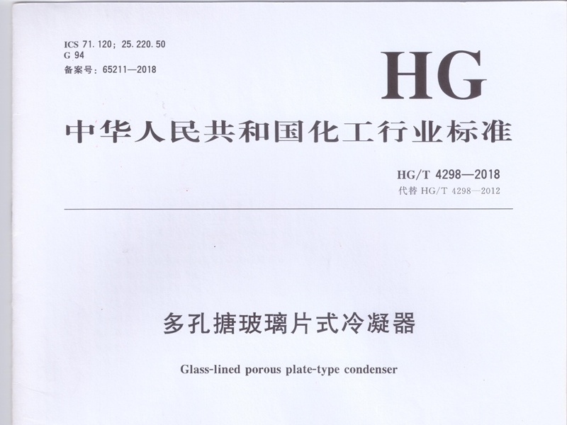 HG/T 4298一2018多孔搪玻璃片式冷凝器要求