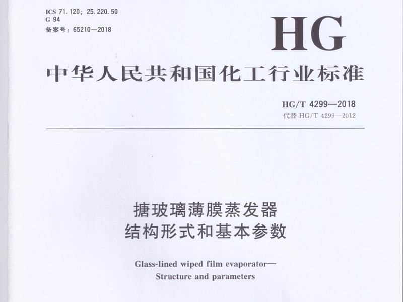 HG/T 4299-2018搪玻璃薄膜蒸發(fā)器要求及檢測標準
