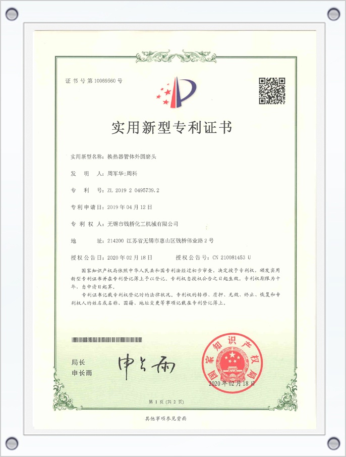 碳化硅換熱器外側(cè)密封裝置專利證書