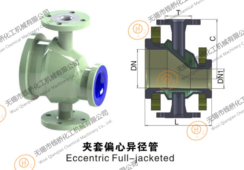 錢橋化工機(jī)械生產(chǎn)的搪瓷夾套異徑管分為搪瓷夾套偏心異徑管和搪瓷夾套同心異徑管: