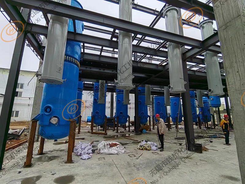 無錫市錢橋化工機械有限公搪玻璃塔設(shè)備施工現(xiàn)場
